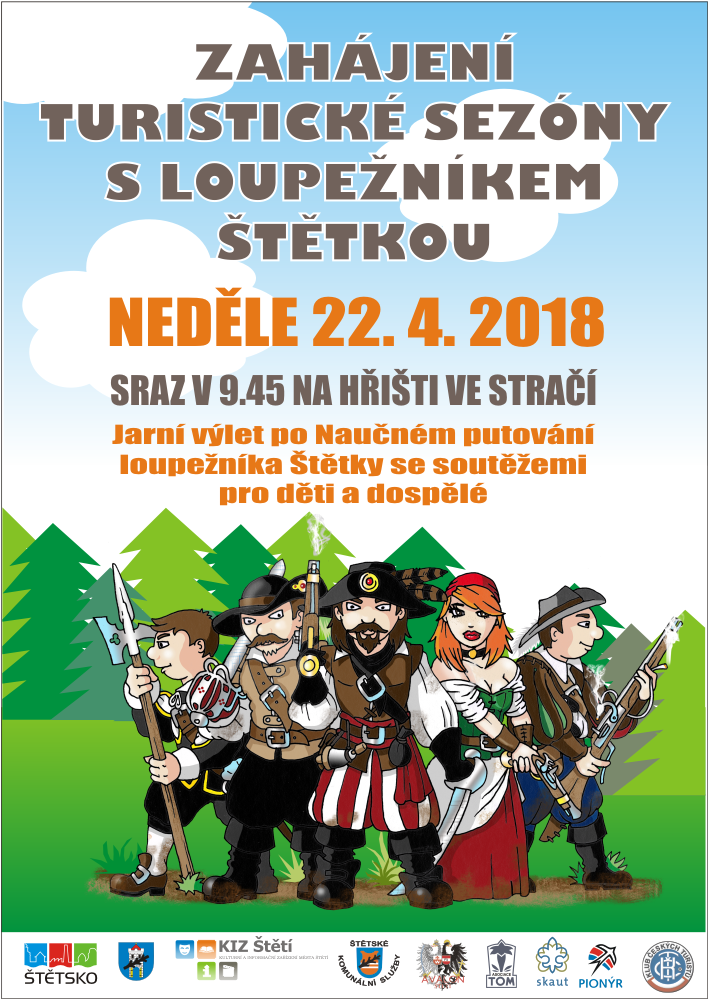 Koncem dubna zahájíme turistickou sezónu na Štětsku tradičně, dobrodružnou výpravou do lesů nad obcí Stračí, asi kilometr od města Štětí. Akce započne v neděli 22. dubna v 9:45 na hřišti ve Stračí. Pro malé i velké návštěvníky je připravena řada aktivit a úkolů, které budou po cestě plnit. Na konci nás čeká zasloužená odměna a občerstvení u táboráku. Kdo ví, možná se ukáže i sám loupežník se svou družinou.