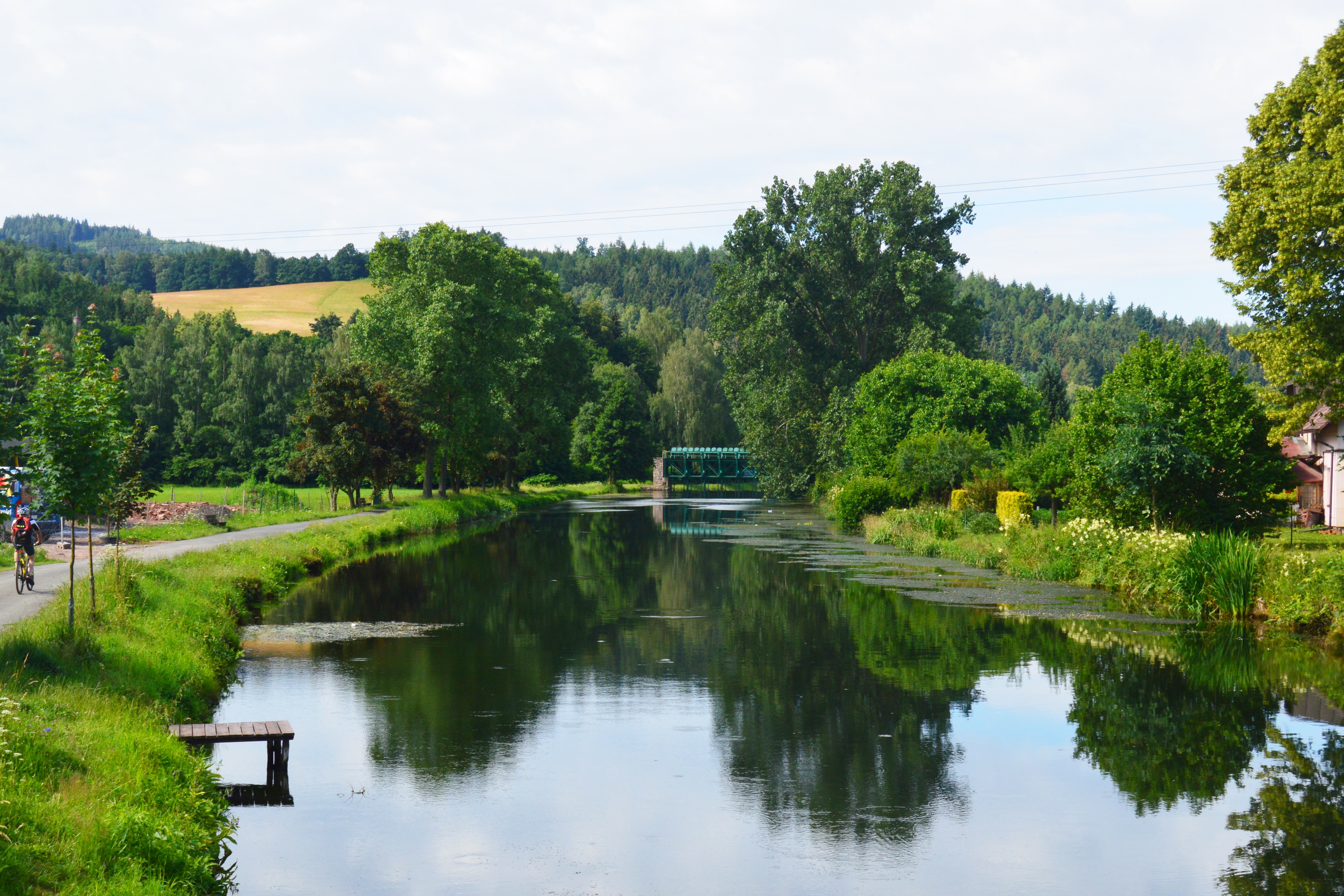 Samotný Náchod se rozkládá na březích říčky Metuje už od 13. století. Za tu dobu bylo ve městě postaveno množství zajímavých staveb, které tu povětšinou stojí dodnes, jsou krásně zrekonstruované a opravené a dělají z Náchoda příjemné místo nejen pro život, ale i jen tak na výlet. Takže jen namátkou: Je tu hezký renesanční zámek, který mimochodem v určitém období vlastnil a kultivoval šlechtický rod Smiřických, zřejmě inspirace pro budoucího slavného rodáka. Na náměstí jsou hned dvě radnice, jedna barokní (slouží dnes jako infocentrum) a druhá novorenesanční, která slouží svému původnímu účelu dodnes. Naproti radnici stojí chlouba náměstí - gotický kostel sv. Vavřice a u něj spokojeně sedí, na své oblíbené lavičce, se svým typickým kloboukem u nohou, asi nejslavnější místní rodák, autor legendárních Zbabělců a dnes již zmiňovaný Josef Škvorecký. Po všech útrapách, nemožnosti vydat svou geniální knihu, přes její zákaz, nucenou emigraci, založení exilového vydavatelství to vypadá, že našel konečně svůj klid. A my tu symbolicky nacházíme začátek našeho výletu. Od lavičky s JŠ se vydejte pěší zónou směrem k Metuji, kde začíná cyklistický okruh TGM. Masaryk ve zdejším kraji na rozdíl od Škvoreckého či Jiráska nežil, ale jezdíval sem rád na dovolenou, podnikal tu pěší i cyklistické výlety a to jak v Čechách tak v Polsku. Právě osobou velkého Evropana chtějí místní návštěvníkům připomenout, že pomyslná čára dělící národy pomalu ztrácí na významu a jednou snad zmizí úplně. Koneckonců, dnešní Cyklotoulky vlastně nerozlišují mezi Polskem a Českem, chvíli jste tu, chvíli zase tam – hezky je tu všude.