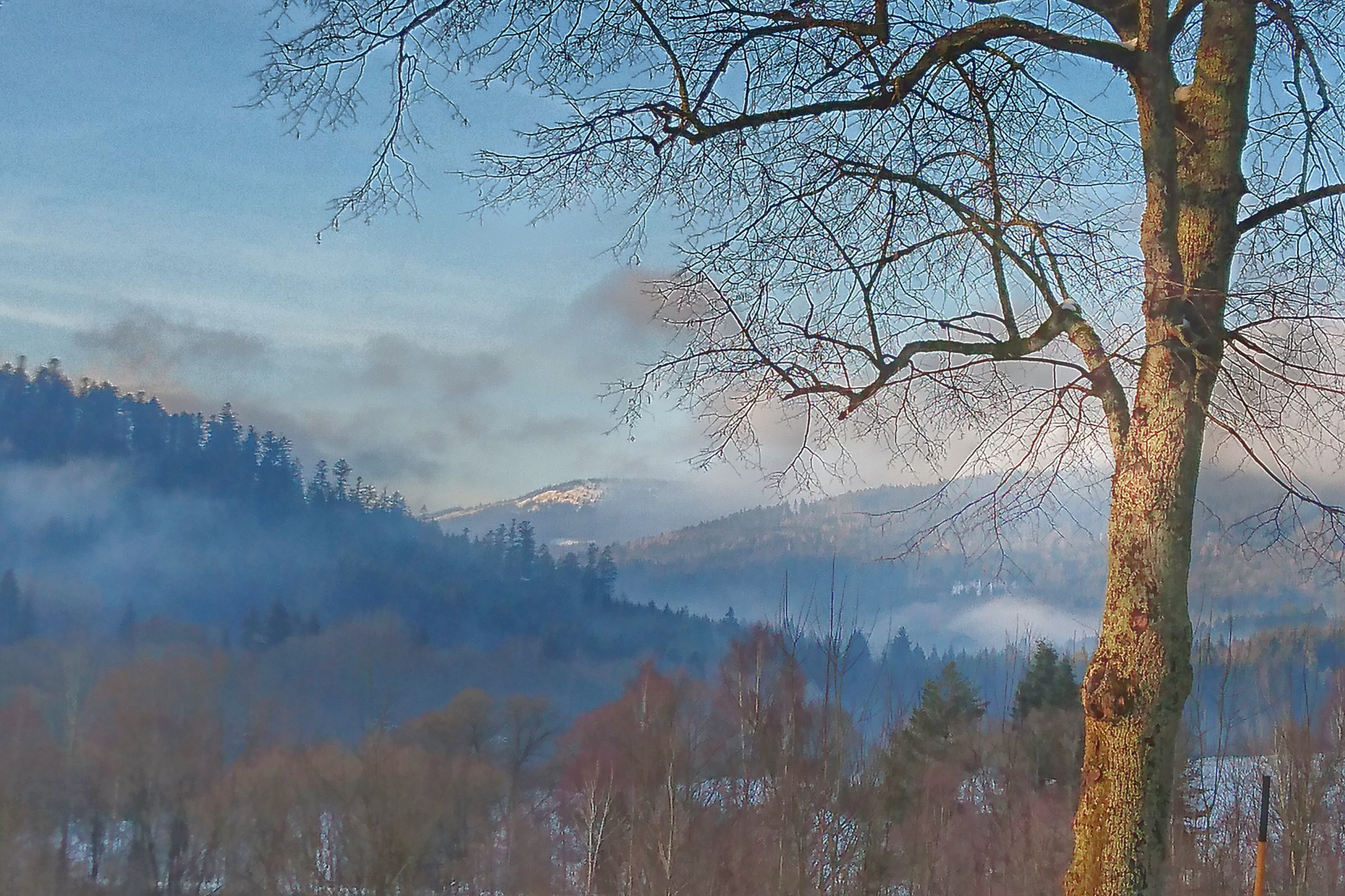 Někde tam v mracích se schovává Velký Javor (Grosser Arber) – nejvyšší hora Šumavy