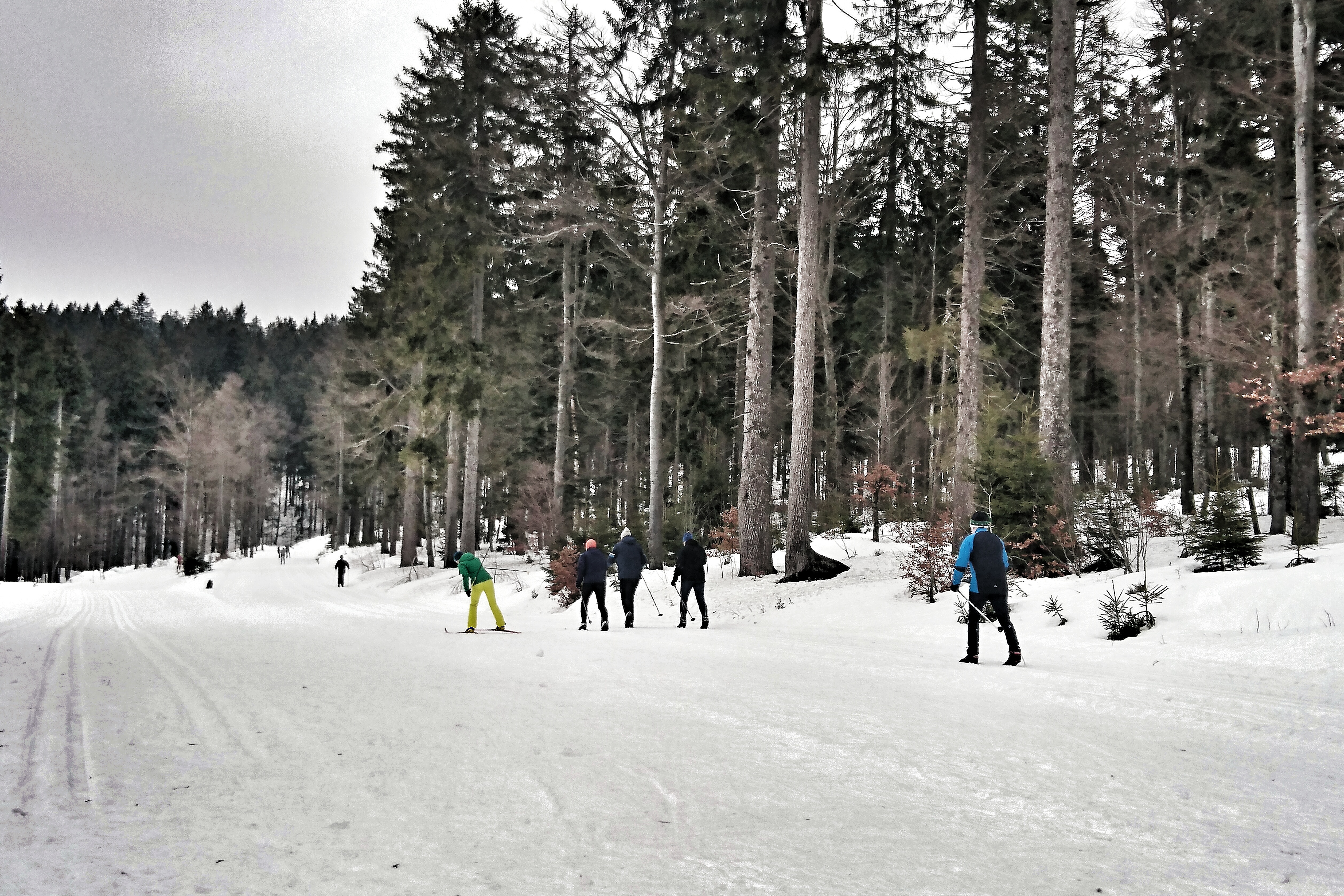 Na druhou stranu je třeba upozornit na to, že parkování je placené (6 EUR za auto) a lyžařský areál zaměstnává kromě šikovných řidičů sněžných rolb i důsledné hlídače parkoviště, takže vyhýbat se placení je spíše kontraproduktivní. Dřív nebo později tady na každého dojde. Společně s parkovným se platí i vstupné do areálu. To sice nikdo nekontroluje, ale zase není už tak vysoké.  Pro dospělého 2,30 EUR pro dítě 1,20 EUR. Za tyto relativně vysoké poplatky nabízí provozovatelé návštěvníkům desítky kilometrů skvěle upravovaných tras pro klasiku i bruslení. Všechny jsou celkem dobře značené i udržované, takže i když návštěvník nevládne němčinou, tak nemusí mít strach z komplikací způsobených cizím prostředím. Jestliže sněží, tak jsou stopy průběžně upravovány i během dne. Přímo u nástupního místa je i chata s občerstvením, která sice nevypadá zvenku příliš útulně, ale uvnitř je příjemně a hlavně na německé poměry docela levně. Pivo 2,60 EUR a Eintopf s chlebem 3,80 EUR. Další občerstvení se nachází pouze na nejdelší trase a je jím horská chata pod Malým Javorem. Ta je pro změnu příjemná už od pohledu a o to útulnější uvnitř. Stylový nábytek, dobrá kuchyně, oheň v krbu…. Jedinou drobnou vadou na kráse je skutečnost, že se návštěvník musí při vstupu do lokálu přezout (dřeváky jsou zdarma k zapůjčení), ale jinak by si asi restaurace svoji útulnost udržela jen stěží.